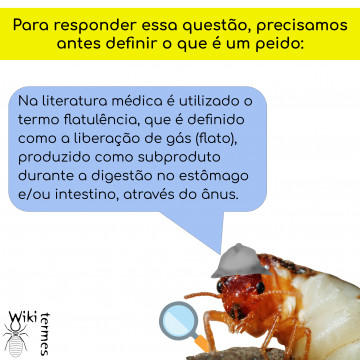 Essa definição é importante, pois todo ser vivo é capaz de produzir algum tipo de gás, mas nem todos liberam pelo ânus. Por exemplo, em alguns insetos os gases gerados são absorvidas pela hemolinfa (fluido corporal análogo ao sangue) e liberados através da respiração, por pequenos orifícios presente na lateral do corpo dos insetos (denominados espiráculos). Mas esse não é o caso dos cupins, eles de fato peidam!