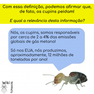 (Uma última curiosidade – importante – sobre o tema, é que o metano é um gás inodoro, ou seja, o peido do cupim não fede!)